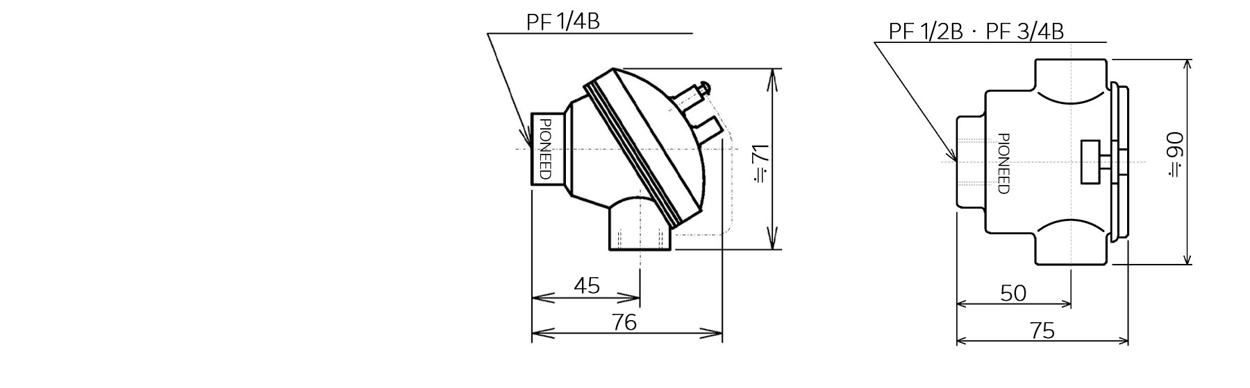 配線取出口 PF 1/2B , PF 3/4B PF 1/4B PF 1/2Bx2 (両口)